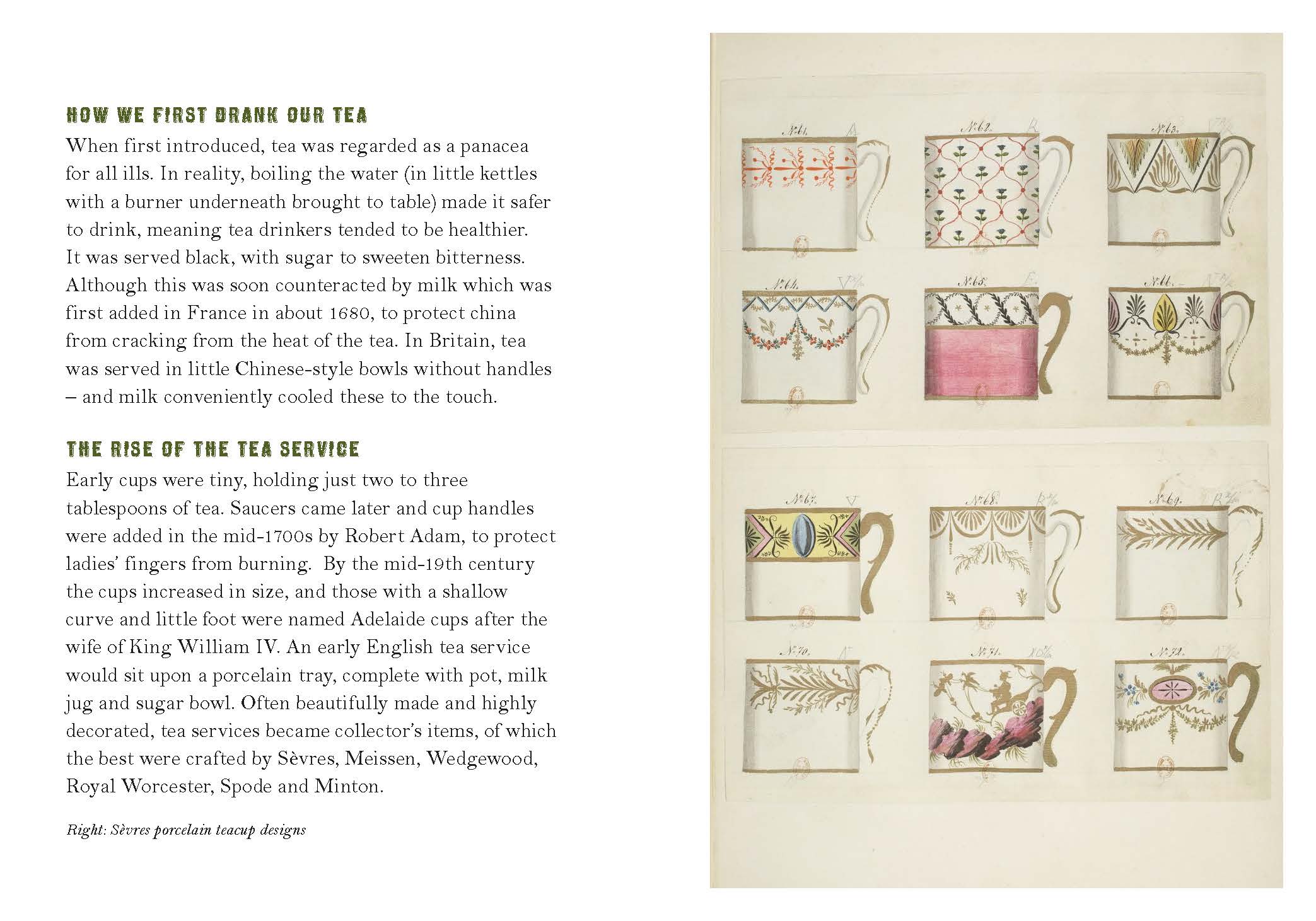 Our bespoke chinaware designs took months to complete and days were spent in the V&A examining the collection – from sugar bowl shapes to shallow ‘Adelaide’ teacups’