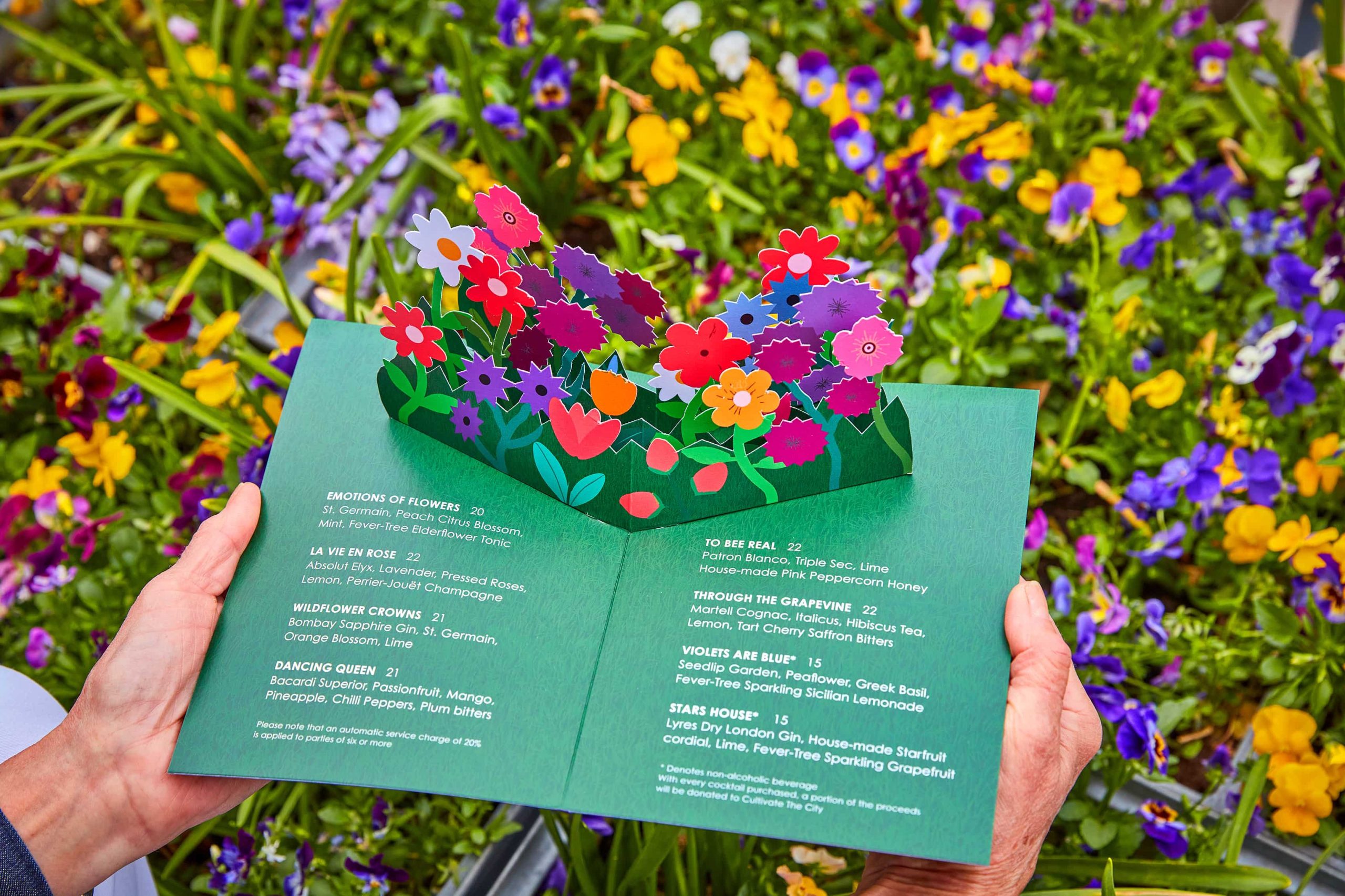 Our pop-up flower menu to celebrate summery floral cocktails for The Pembroke bar at The Dupont Circle hotel.